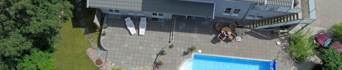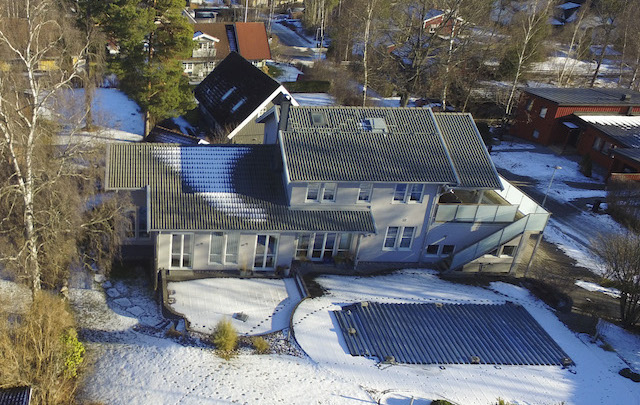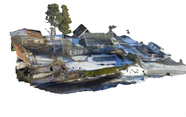 I detta exempel har har en drönare flugit långsamt i en cirkel runt huset och tagit ett hundratal bilder med kameran hela tiden riktad mot mitten av huset.